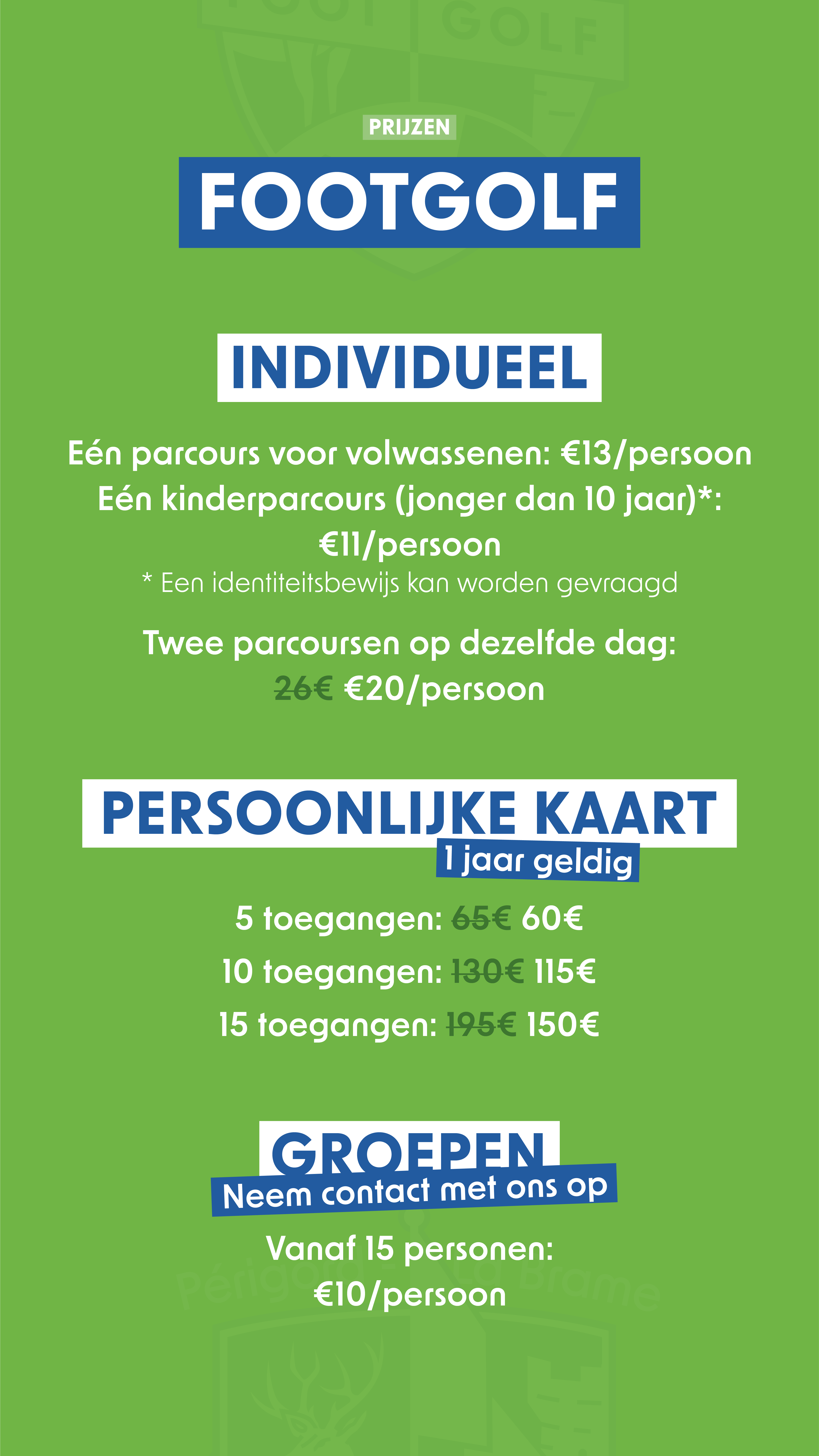 Een leuke en toegankelijke activiteit voor iedereen, Footgolf volgt de regels van golf, maar met een voetbal. Rondom de vijvers en temidden van het groen bestaat onze 11-holes parcours waarin je probeert elk hole met zo min mogelijk slagen te bereiken.
